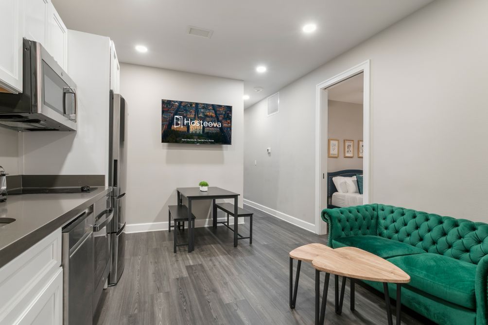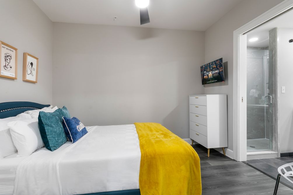 Outside, enjoy the property's community amenities, including a refreshing outdoor pool, peaceful seating areas, and a lush courtyard. It’s the perfect spot to sip a drink and soak in the tranquil surroundings before diving into the city’s vibrant nightlife.